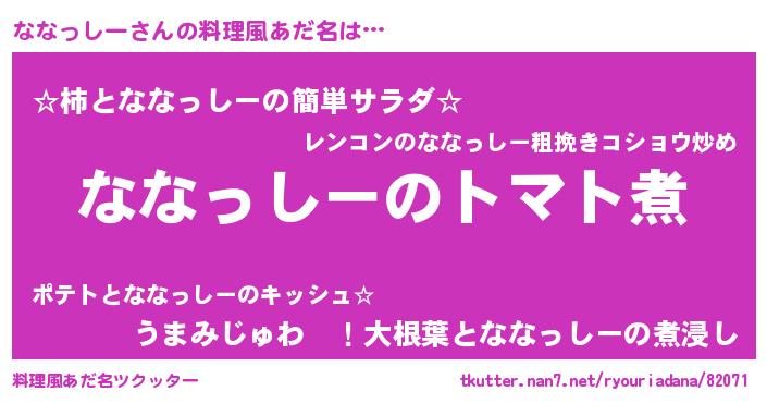 | ヘコむあだ名 | 『つくし』『ななっぺ』『ななにゅー』 |