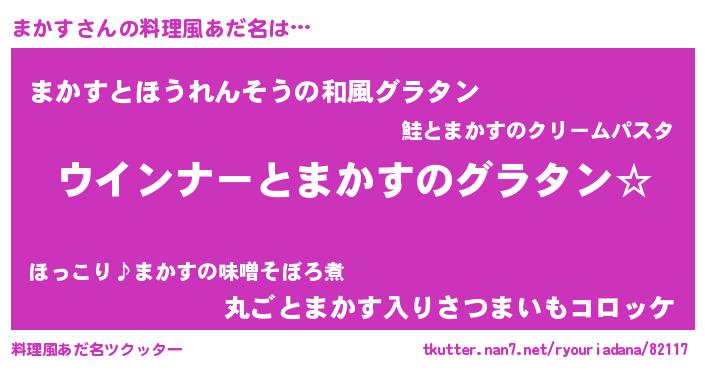 | 女子向けラノベタイトル風あだ名 | 『まかす伯爵の花嫁』『死神まかすの再婚』 |