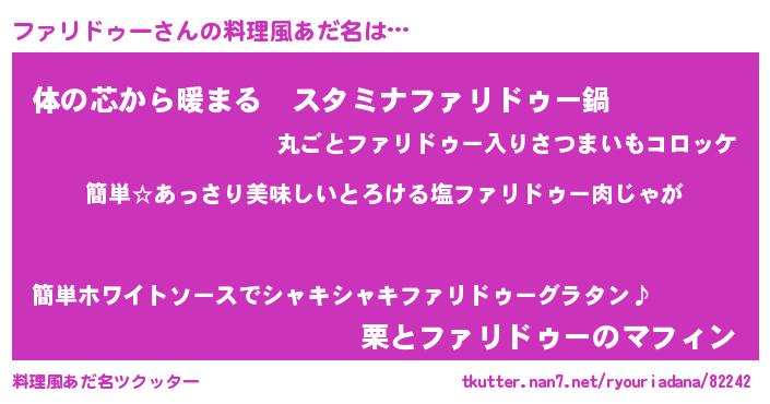 | ファンタジー風あだ名 | 『ファディッシュ』『ヴァルファーナ』 |