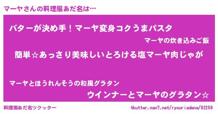 | ヘコむあだ名 | 『マーヤ(笑)』『なまこ酢』 |