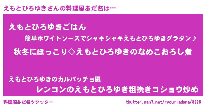 | ヘコむあだ名 | 『えもっちょ』『えもとひろゆき(笑)』 |