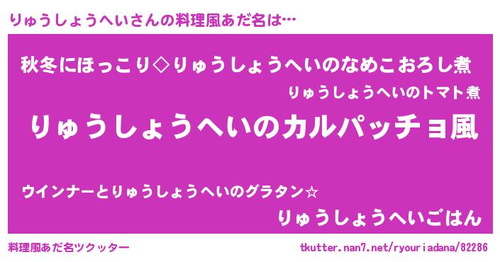 | 意味不明あだ名 | 『住所不定無職りゅうしょうへい(85歳)』 |