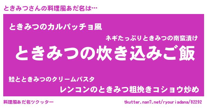 | 胡散臭い通販商品みたいなあだ名 | 『あなたにだけ特別に提供する世界で10本だけ現存している希少なブランデー…その名も「ときみつ」』 |