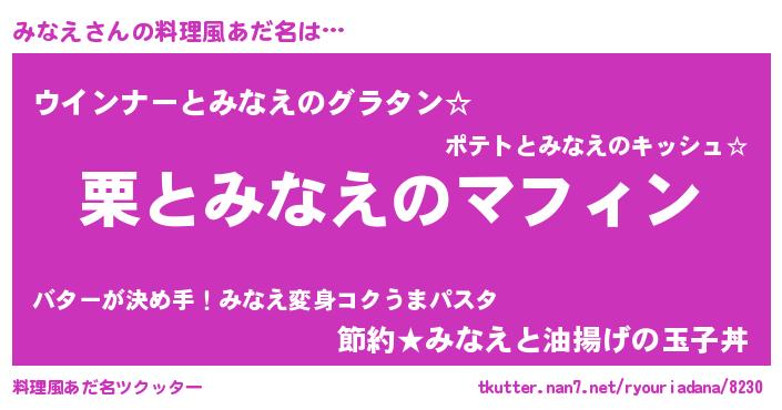 | 恥ずかしいあだ名 | 『みなっちょ』『プリティーみなえ』 |