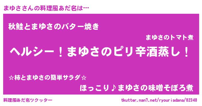 | 男性向けラノベタイトル風あだ名 | 『Re:まゆさから始める異世界生活』 |