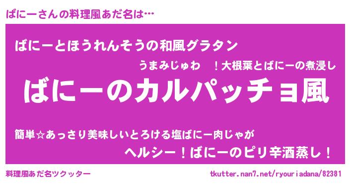 意味不明あだ名 | 『住所不定無職ばにー(59歳)』『自称ばにー』 |