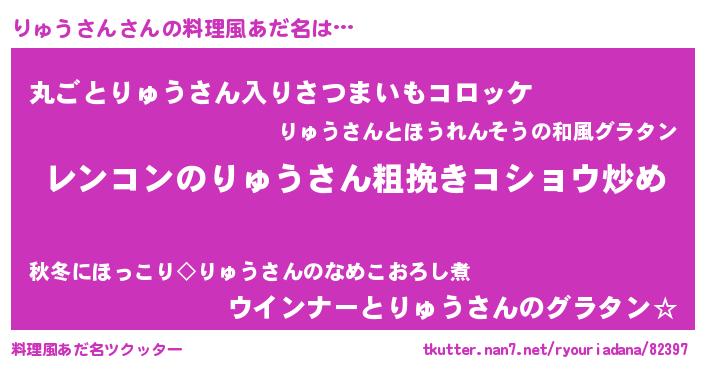 | 意味不明あだ名 | 『自称りゅうさん』『永久保存りゅうさん』 |