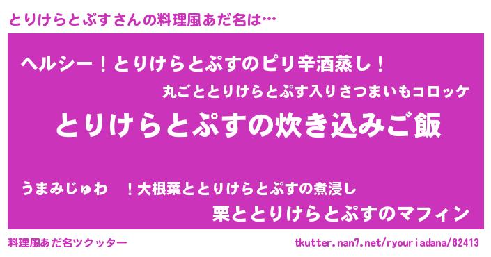 | 意味不明あだ名 | 『自称とりけらとぷす』 |