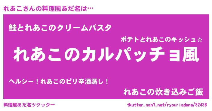 | 欧米人風あだ名 | 『ダレノガレれあこ』『ダニエルれあこ』 |