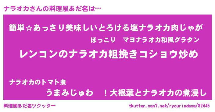 | ヘコむあだ名 | 『ナラオカ(爆)』『レバニラ』 |
