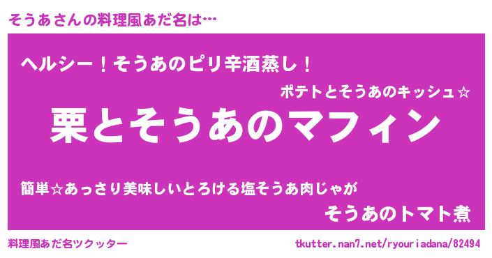| ヘコむあだ名 | 『そうを』『そうあ(苦笑)』『牛乳』 |