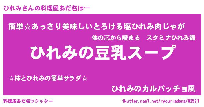 | 女子向けラノベタイトル風あだ名 | 『ひれみは平凡を望む』 |