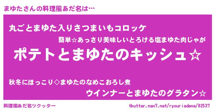 | 胡散臭い通販商品みたいなあだ名 | 『伝統あるサプリメント…その名も「まゆた」』 |