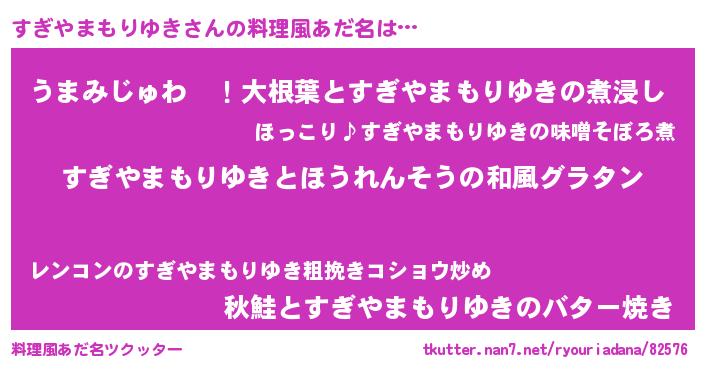 | 男性向けラノベタイトル風あだ名 | 『転生したらすぎやまもりゆきだった件』 |