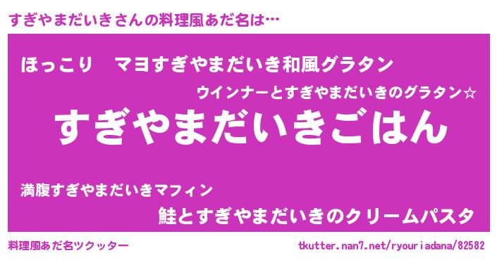 | ヒーロー風カッコイイあだ名 | 『仮面スギダー』『ネオスギヤマダイキ』 |