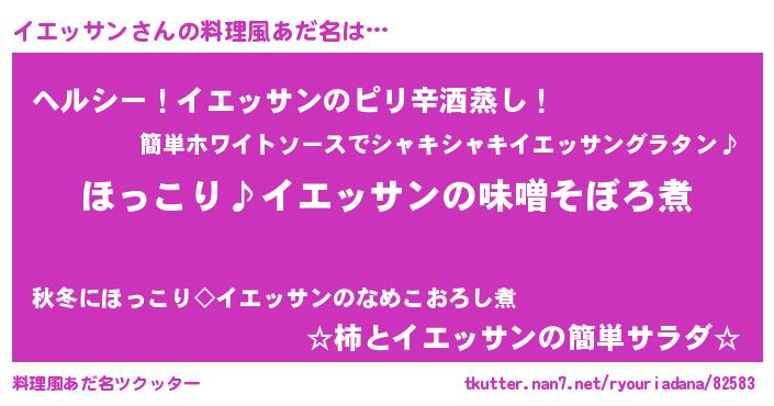 | 男性向けラノベタイトル風あだ名 | 『イエッサンの憂鬱』 |
