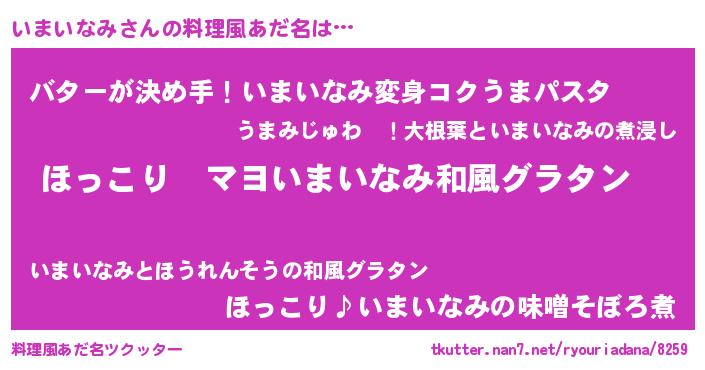 | ヘコむあだ名 | 『いまにゅー』『酢こんぶ』『いまを』 |