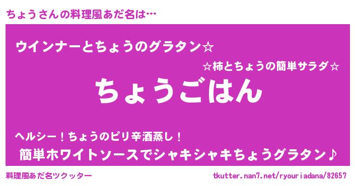 | ヒーロー風カッコイイあだ名 | 『ウルトラちょうマン』『銀牙騎士チョ』 |
