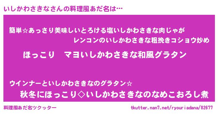 | ヘコむあだ名 | 『いしかわさきな(震え声)』『酢こんぶ』 |