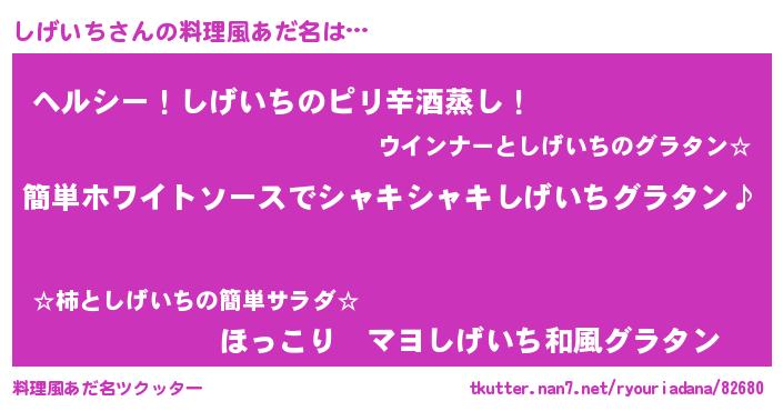 | ピコ太郎風あだ名 | 『シゲ四郎』『ピシ六郎』『シコ八郎』 |