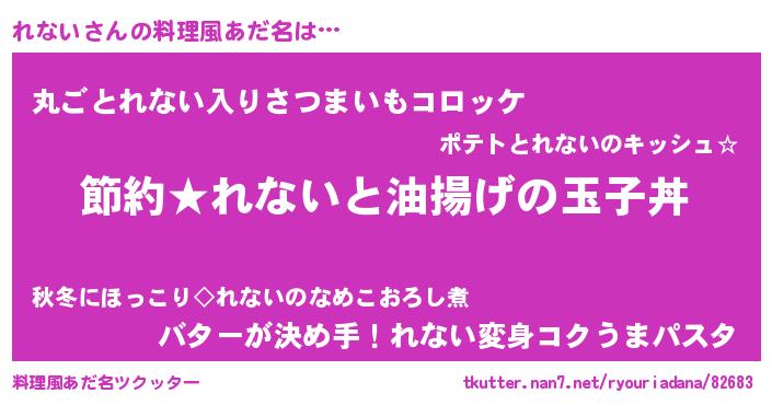 | 男性向けラノベタイトル風あだ名 | 『れないの憂鬱』『魔弾の王とれない』 |
