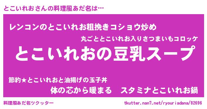 | ヘコむあだ名 | 『とこを』『豆乳』『とこもー』 |