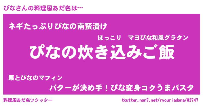 | ヘコむあだ名 | 『ぴなもー』『ぴな(笑)』『酢こんぶ』 |