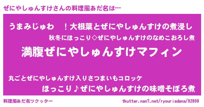 | 胡散臭い通販商品みたいなあだ名 | 『絶対に幸福をもたらす水素水…その名も「ぜにやしゅんすけ」』 |