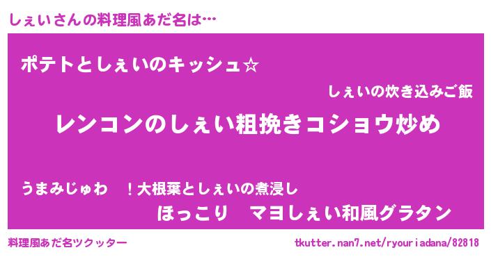 | ヘコむあだ名 | 『しぇっぺ』『なまこ酢』 |