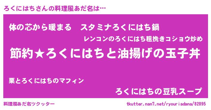| ポケモン風あだ名 | 『ロクチュウ』『ロクニダネ』 |