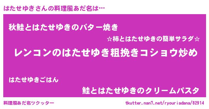 | ヘコむあだ名 | 『はたせゆき(苦笑)』『はたっぺ』 |