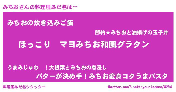 | 男性向けラノベタイトル風あだ名 | 『この素晴らしい世界にみちおを!』 |