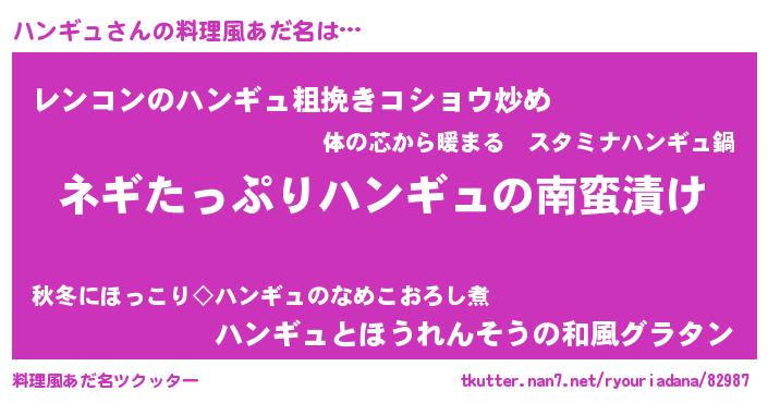 | 意味不明あだ名 | 『ペロリンハンギュ』『自称ハンギュ』 |
