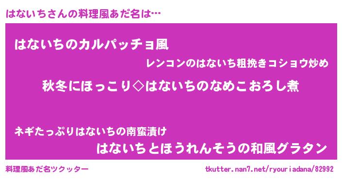 | 男性向けラノベタイトル風あだ名 | 『はないちに滅ぼされるだけの簡単なお仕事です』 |