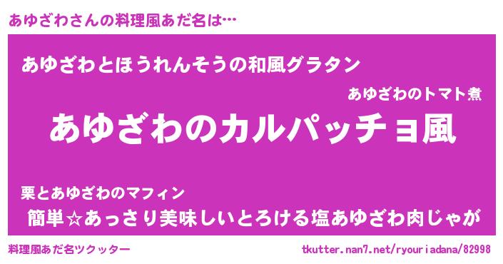 | ヒーロー風カッコイイあだ名 | 『仮面アユダー』『ネオアユザワ』 |