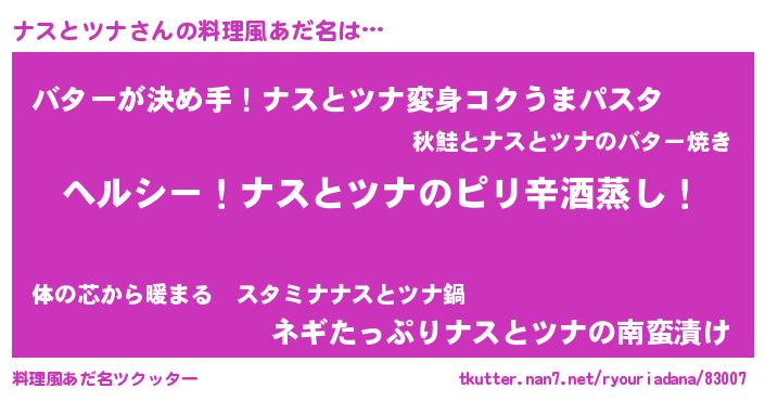 | 女子向けラノベタイトル風あだ名 | 『闇のナスとツナ』『ナスとツナ恋絵巻』 |