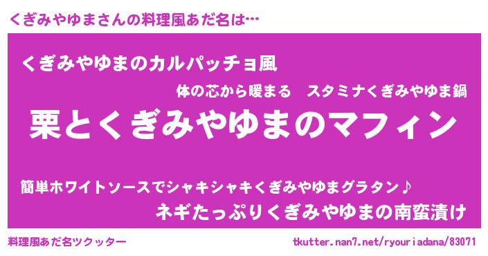 | ヒーロー風カッコイイあだ名 | 『仮面クギダー』『スーパークギミヤユマ』 |