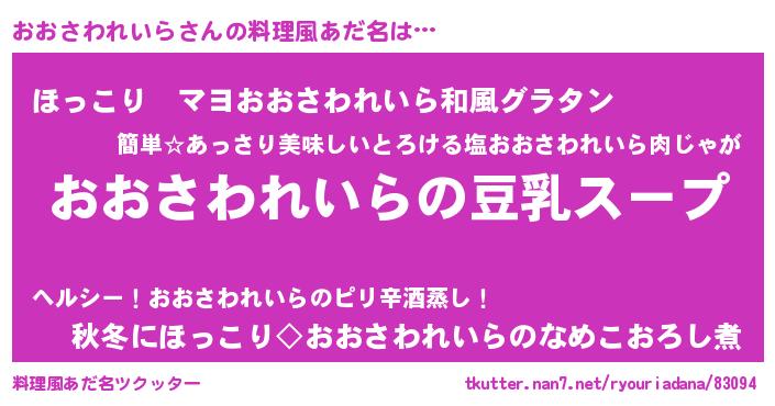 | 意味不明あだ名 | 『とにかく怪しいおおさわれいら』 |
