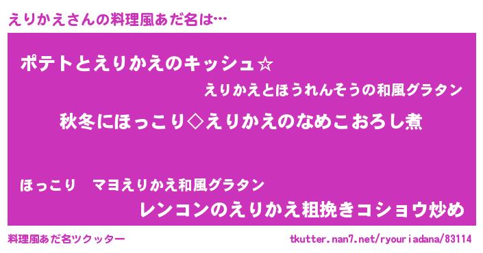 | ヘコむあだ名 | 『えり太郎』『えりかえ(爆)』 |