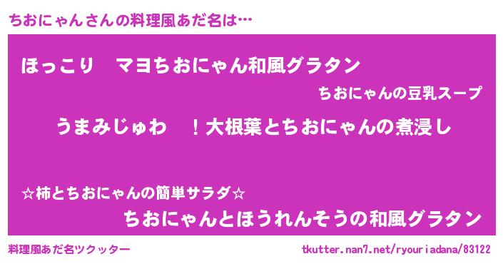 | 欧米人風あだ名 | 『ちおにゃんクリステル』 |