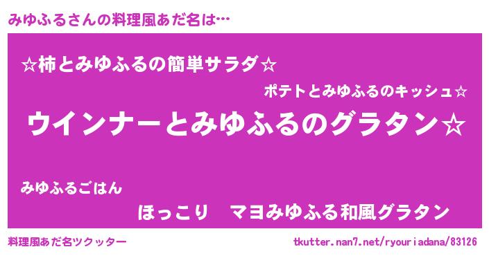 | ヒーロー風カッコイイあだ名 | 『ウルトラみゆふるマン』『仮面ミユダー』 |