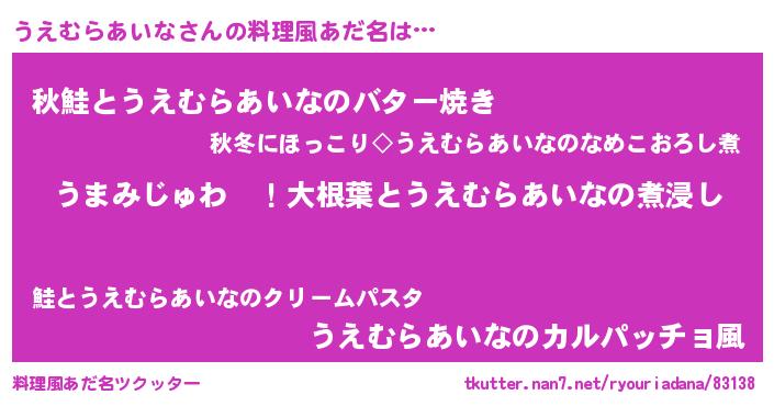 | ヘコむあだ名 | 『レバニラ』『うえむらあいな(震え声)』 |