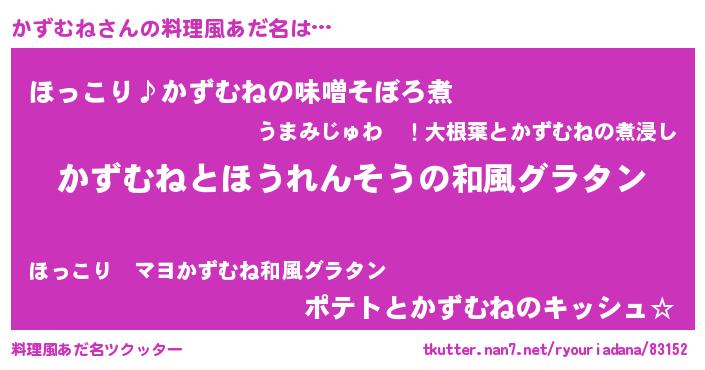 | ヘコむあだ名 | 『かずにゅー』『かず太郎』『豆乳』 |