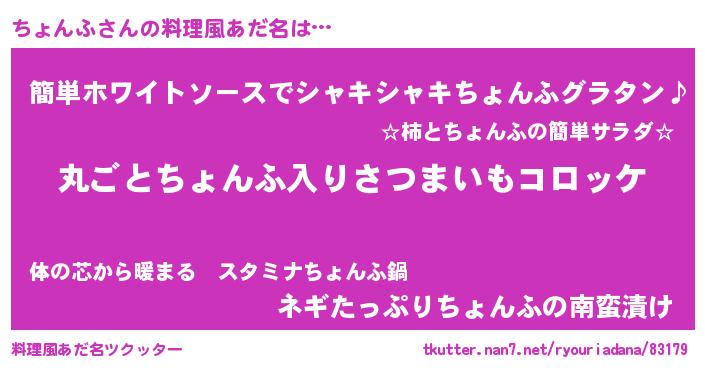 | 男性向けラノベタイトル風あだ名 | 『この素晴らしい世界にちょんふを!』 |