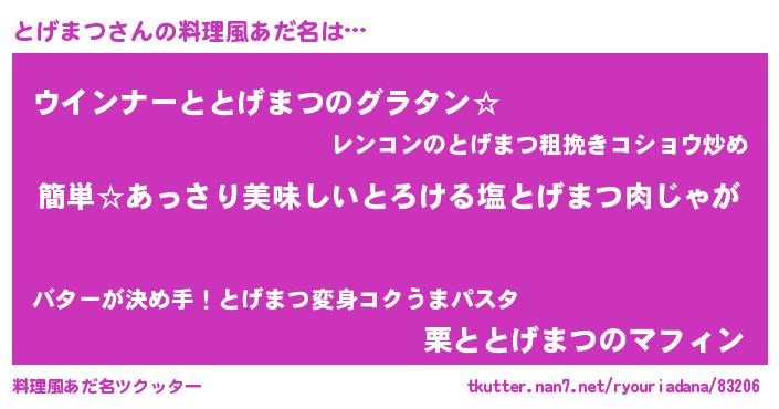 | 意味不明あだ名 | 『永久保存とげまつ』『自称とげまつ』 |