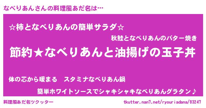 | 2回繰り返すあだ名 | 『なべなべ』『だらだら』『ななべべ』 |