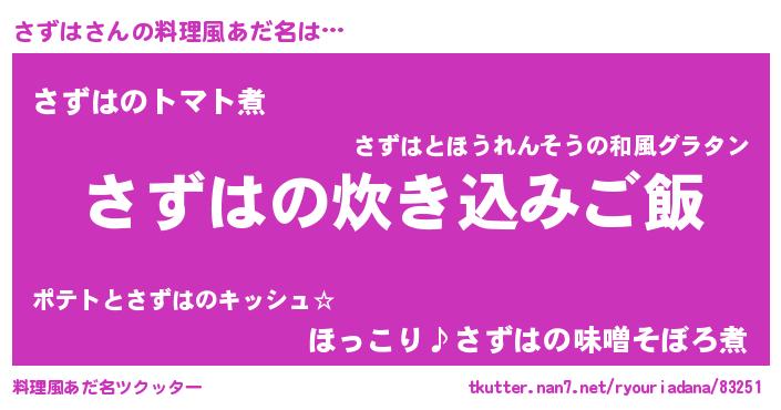 | ヒーロー風カッコイイあだ名 | 『天空の使者さずは』『スーパーサズハ』 |
