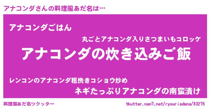 | 意味不明あだ名 | 『なめこ科アナコンダ属』 |