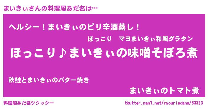 | 意味不明あだ名 | 『ペロリンまいきぃ』『自称まいきぃ』 |