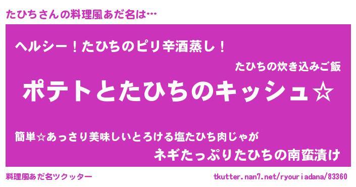 | 意味不明あだ名 | 『とにかく怪しいたひち』『自称たひち』 |